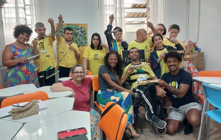 Realizado na Escola Waldorf Quintal Aroeira, APAE e Abrigo de Crianças Saica Zilda Arns.